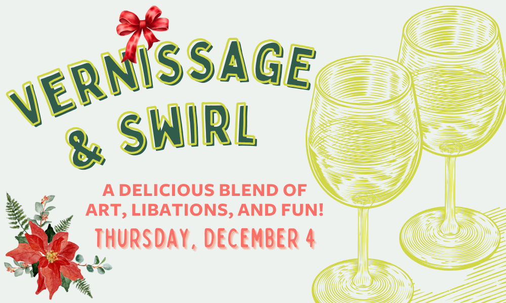Celebrate the season in style at our Holiday Vernissage & Swirl on Thursday, December 4 from 5:30–7:00 pm! Enjoy a festive spread of hearty appetizers and mini sweet treats prepared by Spring and Porter, paired with your choice of wine, beer, or cocktails. Toast to the holidays with live music by Pete Kehoe, setting a cheerful tone for an evening of artful shopping and merriment.